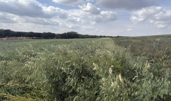 图2.四子王旗供济堂镇后坊子村的燕麦(左)和苜蓿草(右)试验地(2025.9.19)