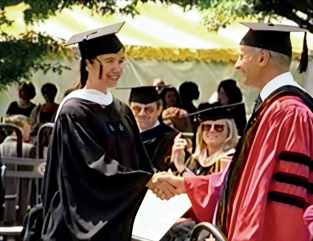 杨佳(左)在哈佛毕业典礼上和约瑟夫·奈握手